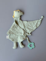 100% organic cotton doudou with BPA free silicone teether.