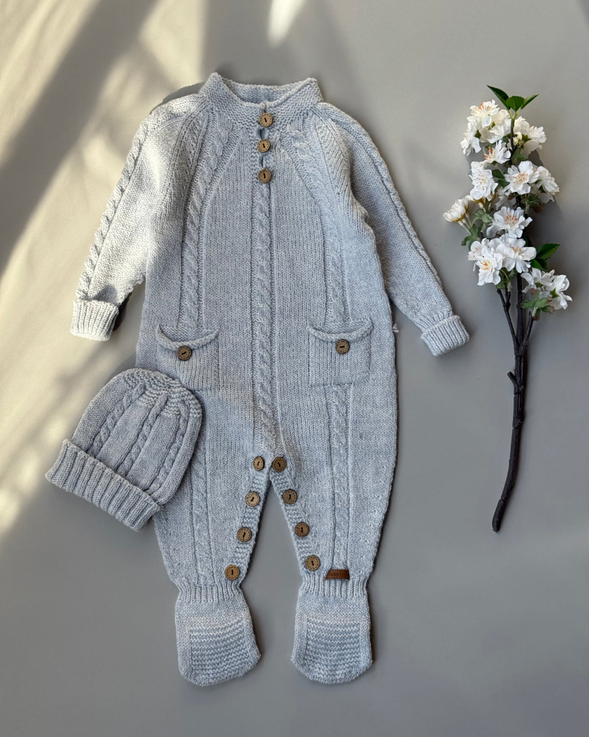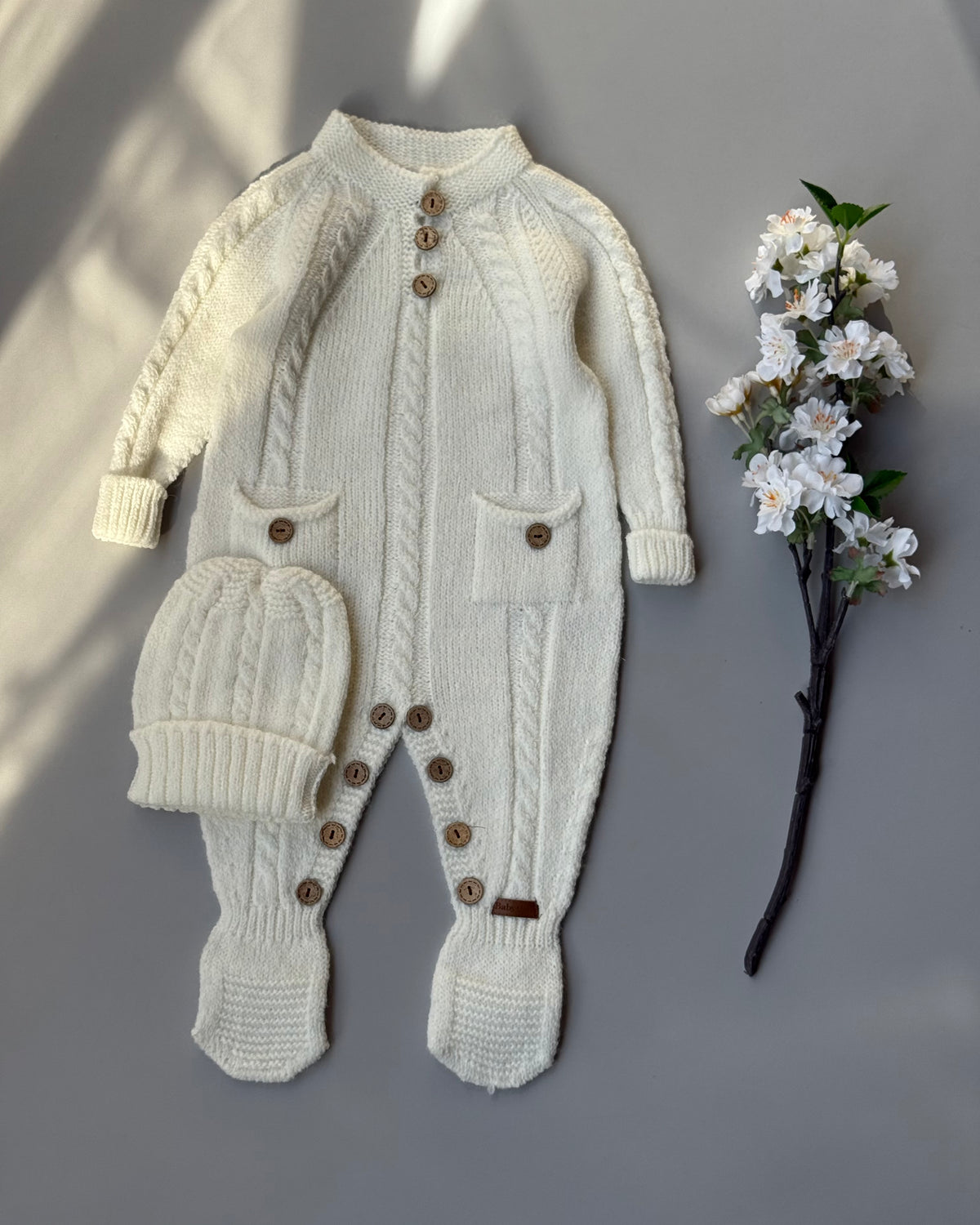 Soft wool overalls with matching hat